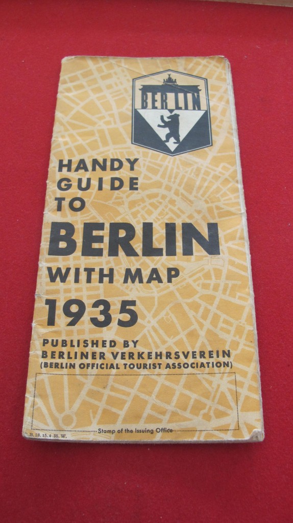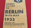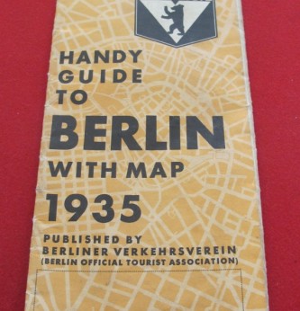 Unusual Berlin Guide Map for 1935. Published by the Berlin Official Tourist Association. Being a guide to the Olympics held in 1936 and also details of the various museums, art galleries and sites in Berlin.  Published in various languages including English. Good condition.
