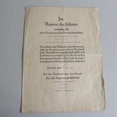 Third Reich Promotion Document for a Police Sergeant – Item 117629