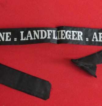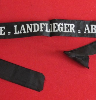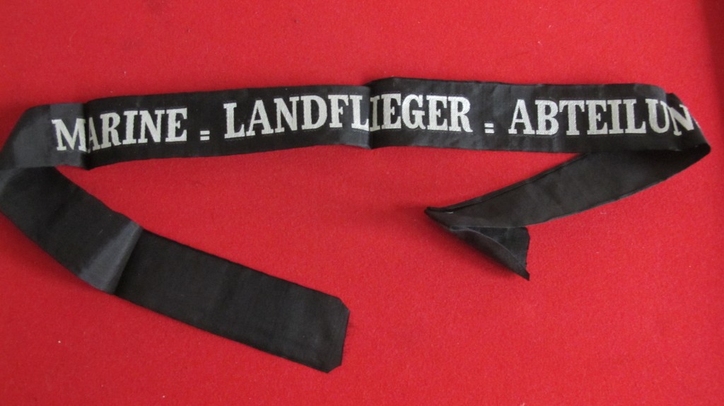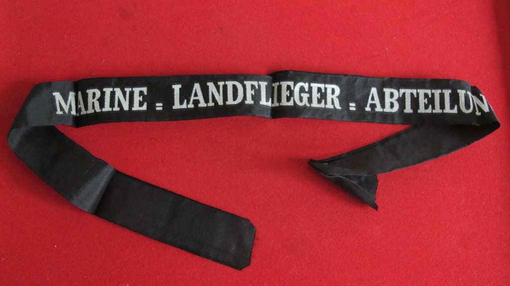 Full length Imperial German Naval Sea Flyers cap tally. Silver wire bevo embroidery and marked “Marine Landflieger Abteilung”. Good condition for age. A scarce item of WWI flying.