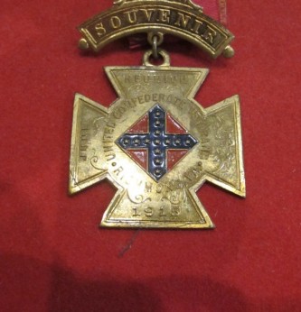 Scarce Reunion of United Confederate Veterans June 1-3 1915 Medal. Complete with ribbon and in good condition.