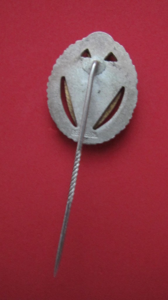 Excellent condition Third Reich Veterans of WWI service stick pin for 25 years service in the armed service. Excellent enamel with silvered oak leaf wreath with 25 in black enamel. Compete with pin back fixing and Ges Gesch marked to reverse.