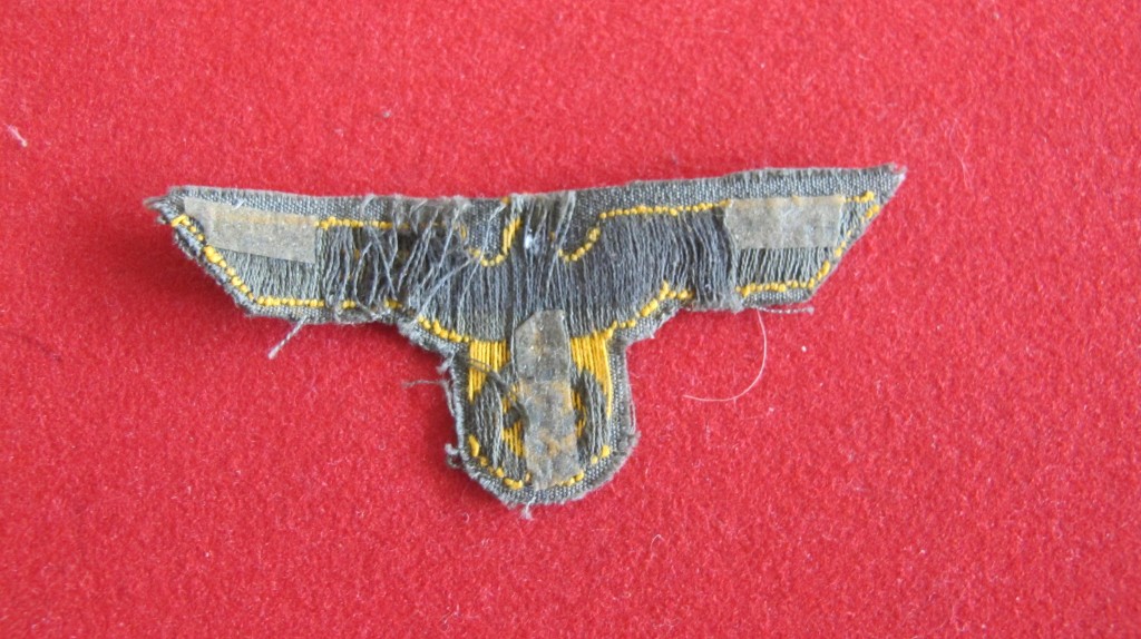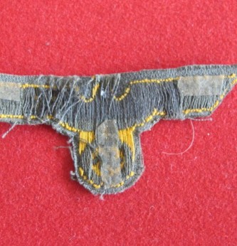 Cap removed Third Reich Coastal Artillery side cap bevo eagle. Good overall condition for age. Yellow bevo eagle on green backing.