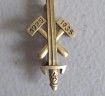 Small gilt Gau badge for Essen. Gilt grade with crossed hammers and dates 1925. The foundation of the Gau and 1935 the date of the introduction of the badge. Complete with its pin back fixing. Jewelers example. Retains much original gilt finish. Similar example shown on Pg 79 of Orders and Decorations, Medals and badges of the Third Reich by Littlejohn and Dodkins.