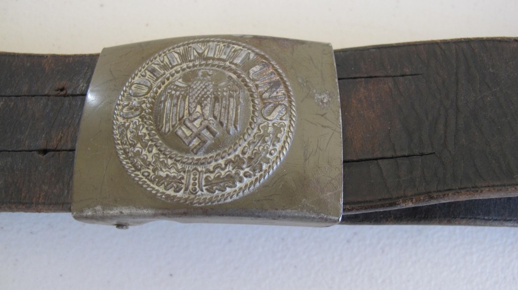 Third Reich German Army Other Ranks steel belt buckle. 1941 dated. Complete with its early leather belt. Good overall condition. Buckle retains much of its original olive drab paint finish.