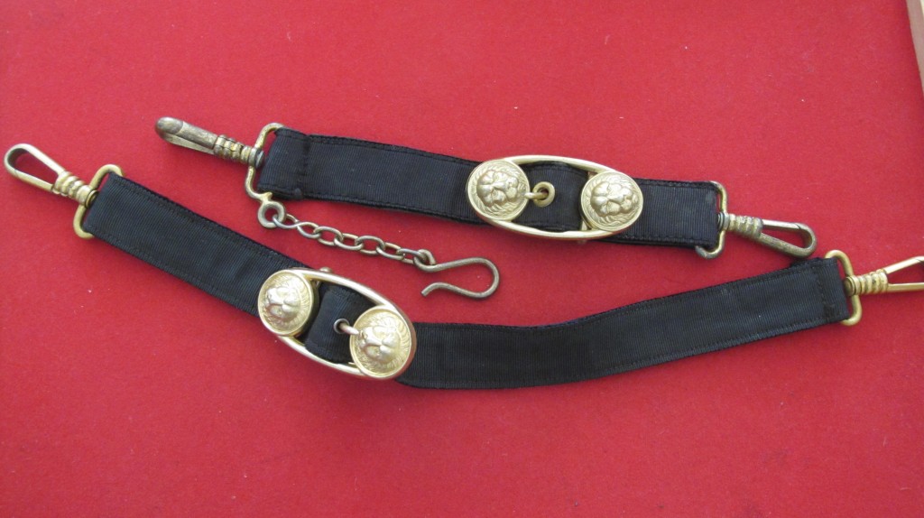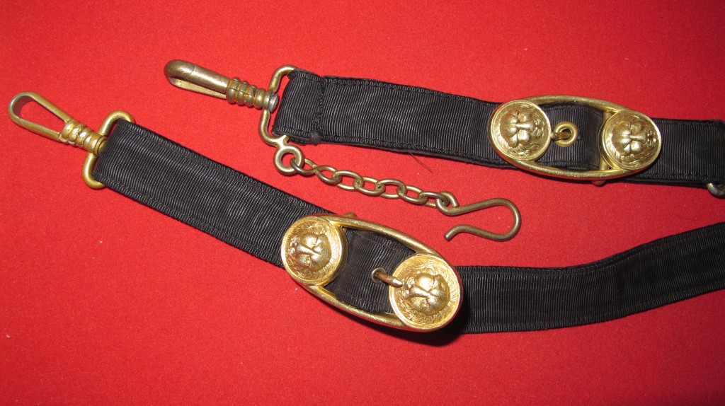 Nice matched pair of German Naval Officers Dagger Hangers. Aluminium gilt lion head hangers. Complete with attachment chains. Good overall condition.