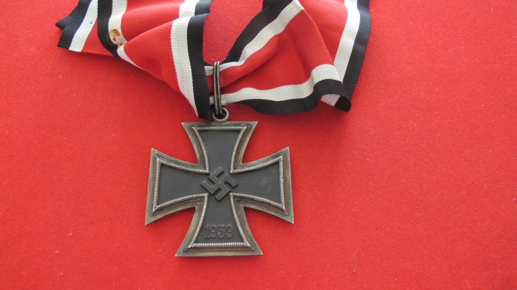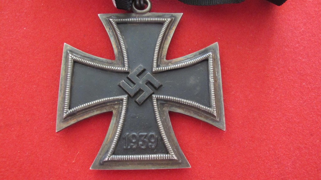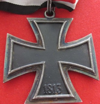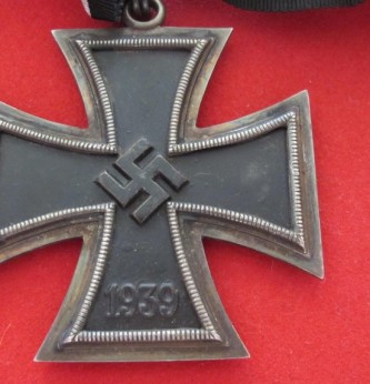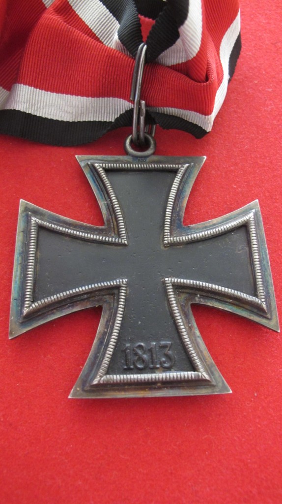 Note: This piece as well as all others in the series of the Iron Cross was from an original design by Karl Friedrick Schinkel. The Grand Cross was almost twice the size of the Iron Cross. Hitler further directed that the Grand Cross be constructed with a gold frame but after having second thoughts on the matter decided to keep it in tradition of the Iron cross and it remained with a silver frame. Goring wore the Grand Cross above the Blue Max.