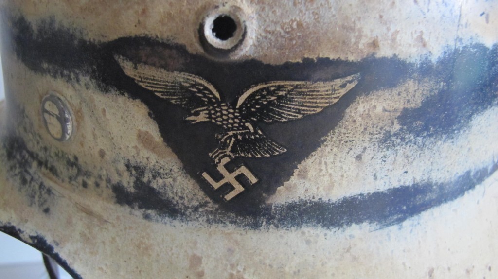 Third Reich Luftwaffe Double Decal Snow Camouflaged Helmet – Item 116457
