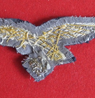 Third Reich Luftwaffe Generals rank gold wire tunic breast eagle. Removed from tunic. Eagle in good condition and now just lightly toned from age wear. Dark blue background. Good condition.