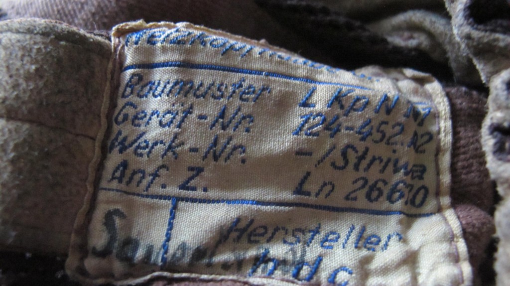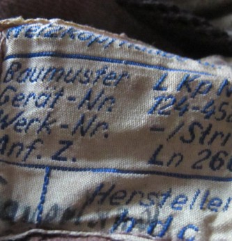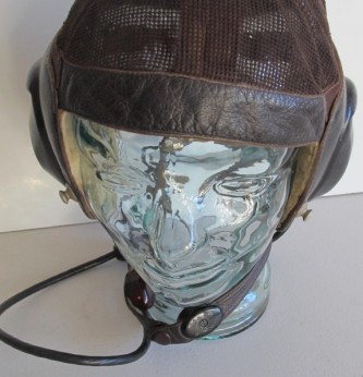 Battle of Britain period Luftwaffe fighter pilots netting flying helmet. Come compete with its ear phones, throat mikes and jack lead and plug (all in excellent condition. Sheeps wool ear pieces. Full manufacturers label to inside and original pilots name inked in. A nice early example of this fighter pilots flying helmet.