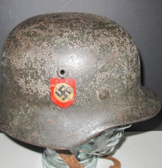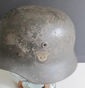Third Reich M40 SS Field Police Double Decal Combat Helmet – Item 117292