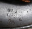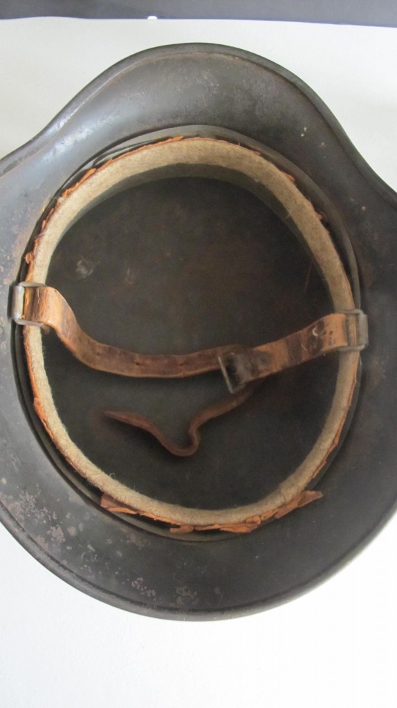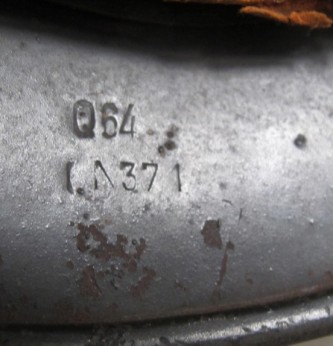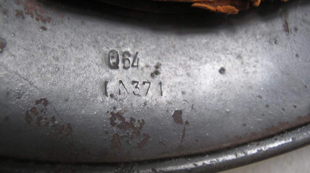 Third Reich German SS Field Police M40 double decal combat helmet. Retaining 80% of its Police decal and 90% of its Party decal. 80% of its dark green paint finish remaining. Rim stamped Q64. and QA 371? Complete with its steel inner band but leather liner has been cut out. Probably the leather was used at the end of the war when there was shortages from 1945 onwards. Comes complete with chin strap. A nice untouched M40 combat helmet to an SS Police unit.