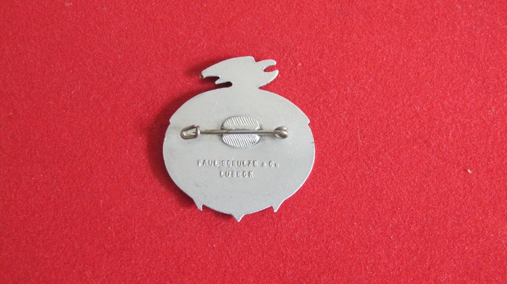 Third Reich Rally Badge for Maritime Day. Shows German art deco style eagle and swastika with sailing ship below. For rally held 25-26.5.1935. Complete with pin and maker marked to reverse. Good condition.