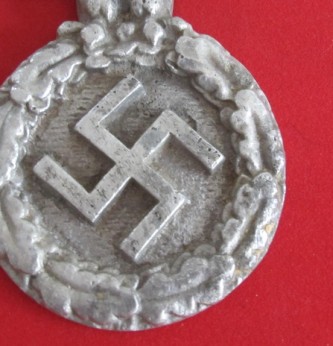Third Reich NSDAP aluminium desk or wall eagle. Some minor corrosion to beak and tip of one wing (possibly where displayed outside). Wingspan 22m and height of 18cm. Reverse with fixing fittings removed. Nice display piece.