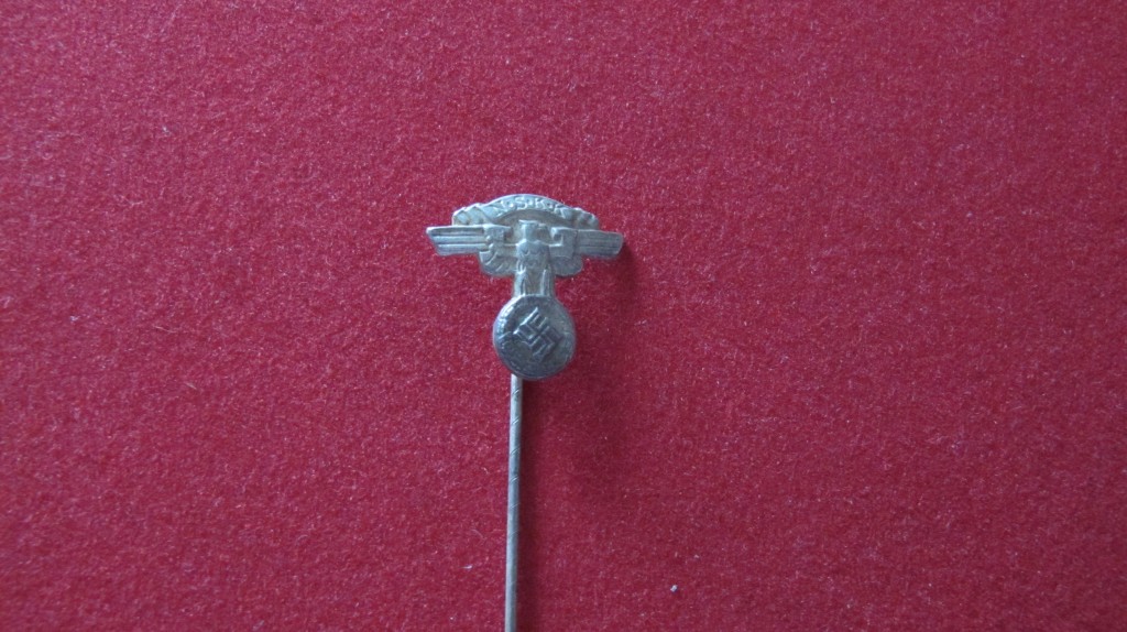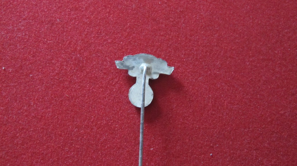 Third Reich NSKK white metal stick pin. Complete with large pin fixing for attachment to lapel. Good condition.