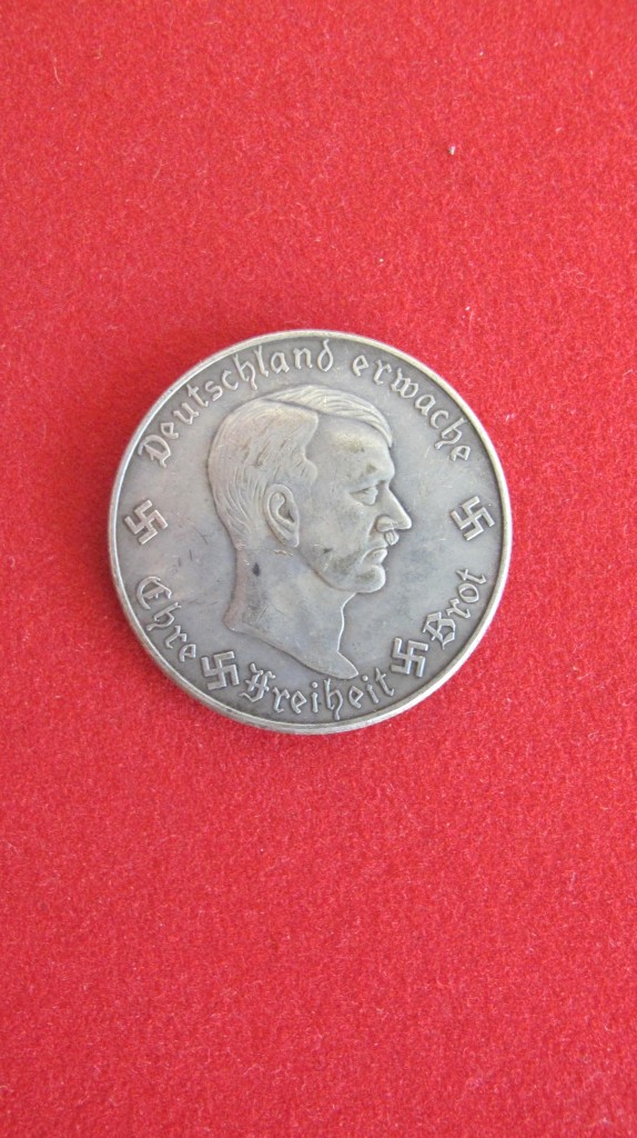 Interesting Nazi Party membership token from the City of Vienna. Dated 1932. Issued for a regional event and membership drive through Vienna in that year. Good condition. Front with early SA eagle and swastika and reverse with profile of Hitler. Measures 3.5cm in diameter.