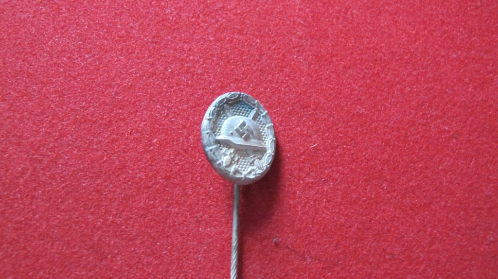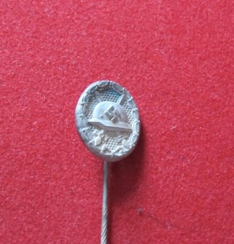 Silver grade Third Reich miniature wound badge stick pin. Worn on civilian clothing to denote Service to the Reich. Good condition with much original silvered finish remaining to pin.