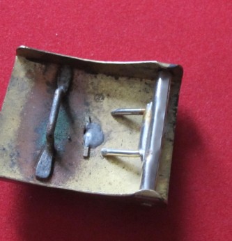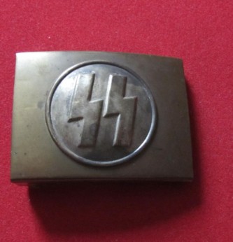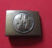 Unusual two piece construction brass and white metal buckle. Design to centre SS runes . RZM stamp to reverse and steel fixing bar. Possibly foreign SS unit issue? Buckle in overall good condition with only service wear.