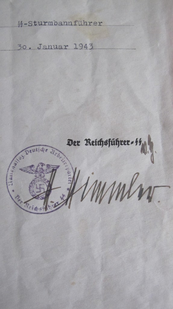 Third Reich SS Promotion Document with Himmler Signature – Item 116070