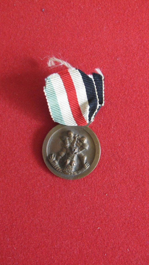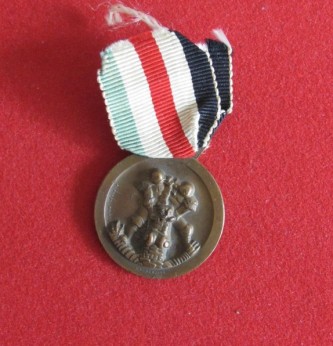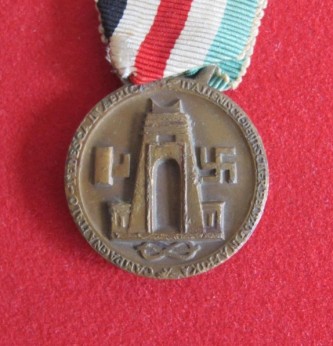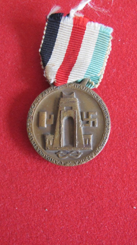 Italian/German Campaign Medal for Victory in Africa 1941. Early bronze example. Complete with original ribbon. Retains much of its original bronzed finish to medal. Good condition.