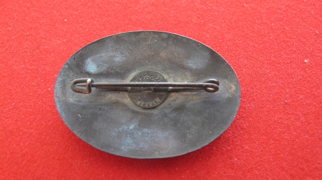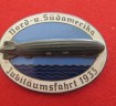 Interesting pre war Zeppelin commemorative badge for North & South American Anniversary and dated 1933. Shows metal zeppelin over enamelled sea. Good condition and complete with pin back fixing. Dresden maker marks to reverse.
