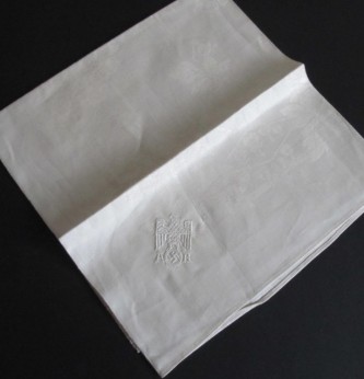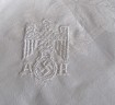 Adolf Hitler personal dining room scarce 59cm square cream damask napkin.  Embossed to one corner with Fuhrer eagle and initials A H. Decorated with mountain flowers. Good condition for age with no damage. As liberated by US troops when they stormed his mountain retreat.