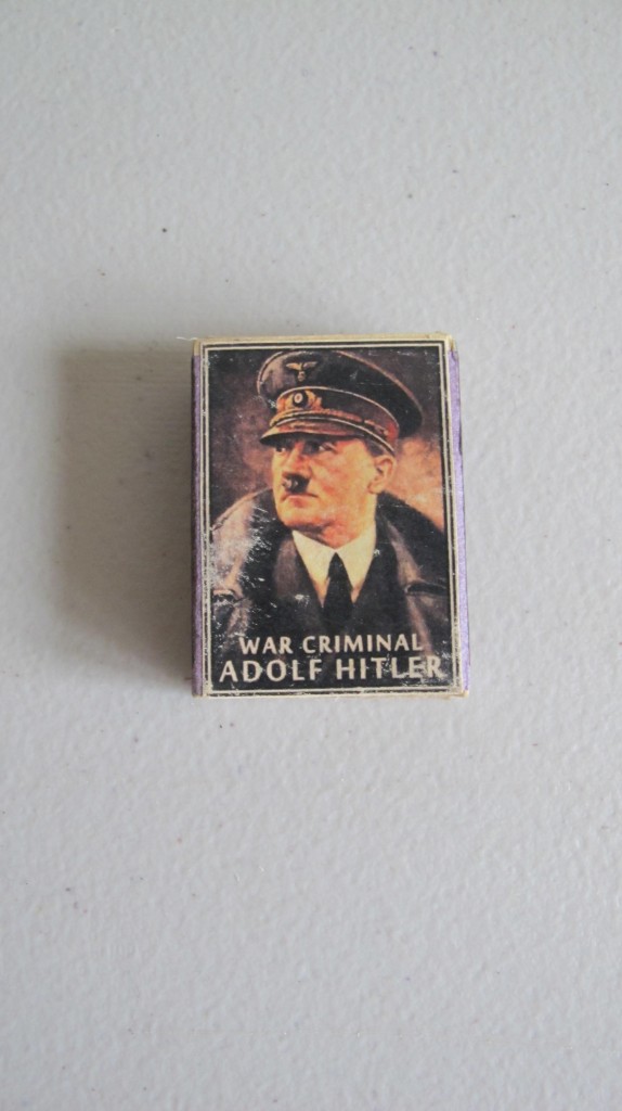US propaganda victory matches. Shows picture of Adolf Hitler in uniform and marked “War criminal Adolf Hitler”. Complete with matches and in good condition for age.
