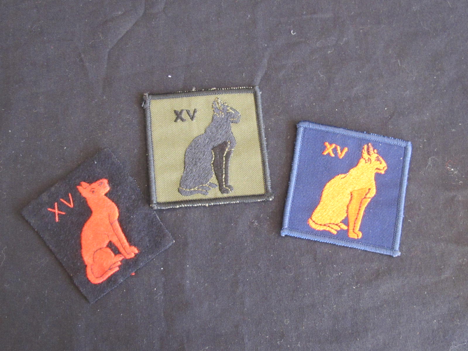 Set of three obsolete pattern British Army Post WWII 15th Signal Regiment arm badges. Three variations. All in excellent condition. Ex Brian Davis collection.