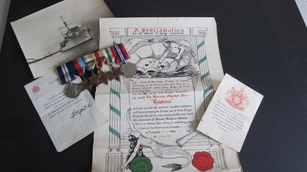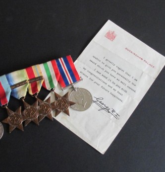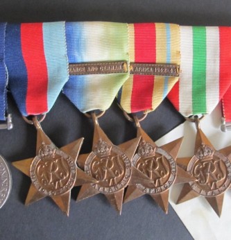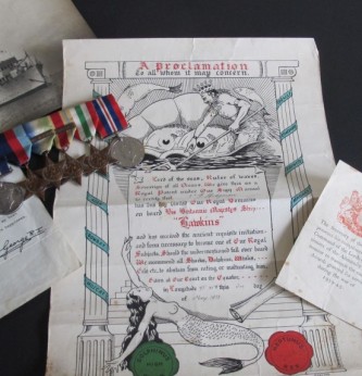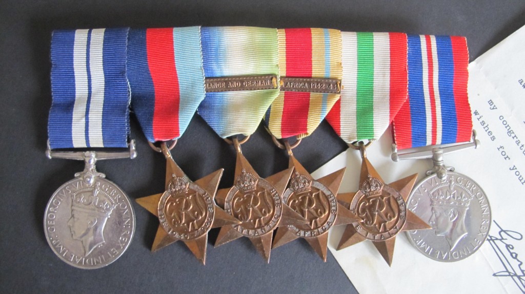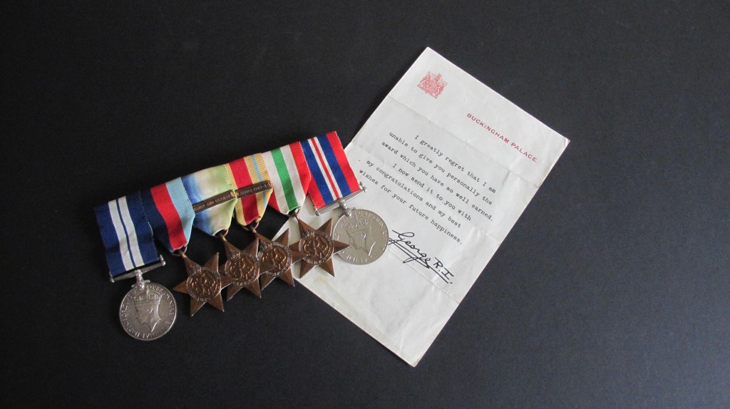 Super 1942 Battle of the Atlantic Gallantry Group. Awarded for the Destruction of the Italian submarine Pietro Calvi by HMS Lulworth. Awarded to Jx 136236 V.F.Hodgman A.B. RN. Group consists of 1939-45 Star, Atlantic Star with clasp for France and Germany, Africa Star with clasp for North Africa 42-43, Italian Star and War Medal.  Group mounted with bar for wear and comes with the following documentation. Admiralty medal issue slip, Buckingham Palace letter for the DSM and citation for crossing the line dated 3 May 1933. This unique grouping issue for bravery, skill and determination when HMS Lulworth rammed an sank the Italian submarine Pietro Calvi. HMS Lulworth was on escort duty south of the Azores when she encountered enemy submarines. The ship carried out depth charge attacks forcing the Italian submarine to the surface. HM Lulworth carried out two attempts to ram the submarine. A boarding party from HMS Lulworth led by Lieutenant Fredrick North were hampered by fire. The Italian crew abandoned the vessel as it capsized. Frederick was unable to escape and lost his life. He received a posthumous mention in despatches in the same gazette as Hodgman’s DSM. There was only nine DSMs awarded for this action. A fine gallantry grouping.
