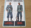 WWII British military poster (Spotter Site Chart No 1 – Enemy Uniforms). Shows German soldier and German Paratrooper. As displayed in Home Guard Offices and Police Stations throughout England so that the civilian population could spot German invaders. Printed by HM Stationery Offices Fosh & Cross Ltd London. Good condition with only minor damage to edges where displayed. Measures 76 x 51 cm approx. Produced in 1940s when invasion was a real threat to England.