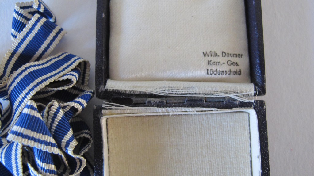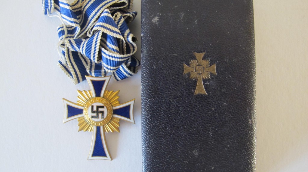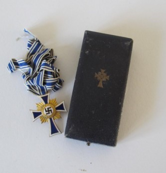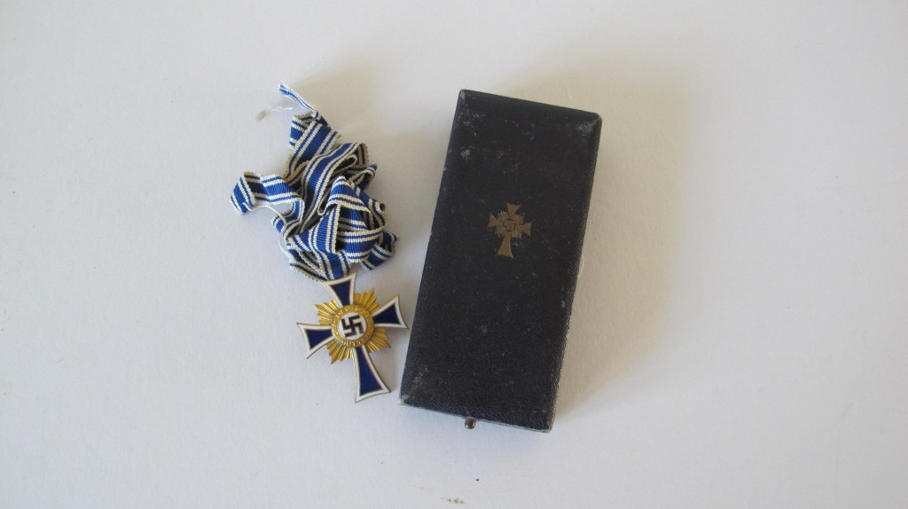 Good grade Order of the German Mothers Cross. Complete with full length neck ribbon and contained in original leatherette presentation case by Deumer. A nice example of this award instituted by Hitler for German mothers bearing children for the Reich.