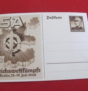 Mint Commemorative Third Reich Postcard for National Competition of the SA in Berlin between 15-17 July 1938. Similar example shown on Pg 193, Postcards of Hitlers Germany Vol 2.