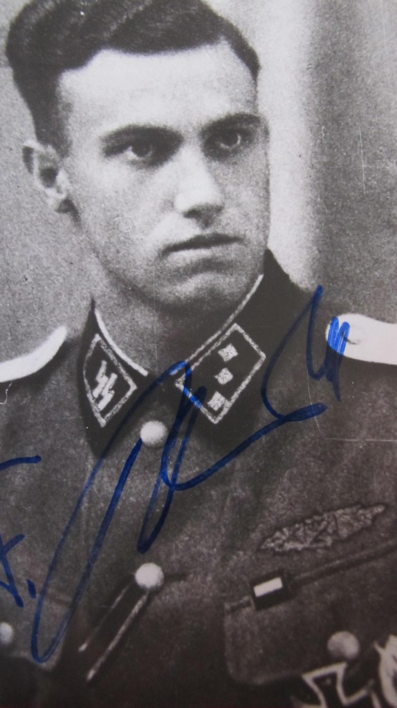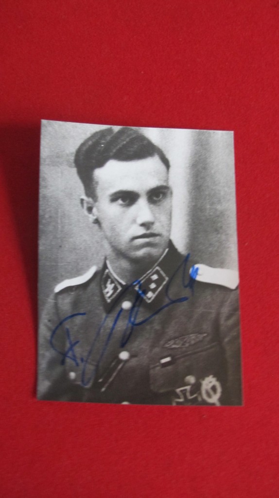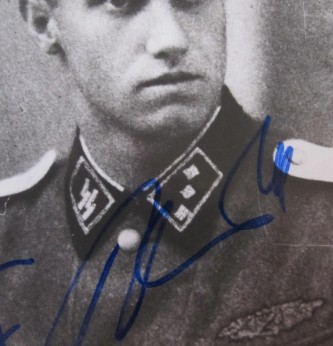 Post war photograph with pen signature of Oberst Friedrich Blond who was awarded the Knights Cross on 28.4.1945. and was a member of the 12th SS Panzer Grenadier Regiment.