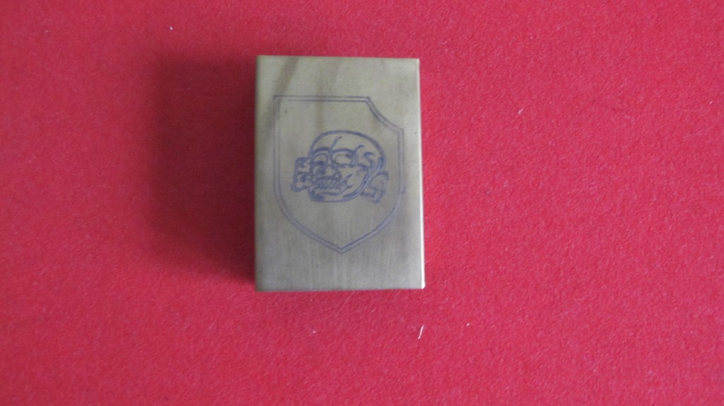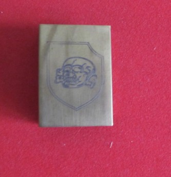 Brass post war manufactured SS skull engraved matchbox cover. Good condition.
