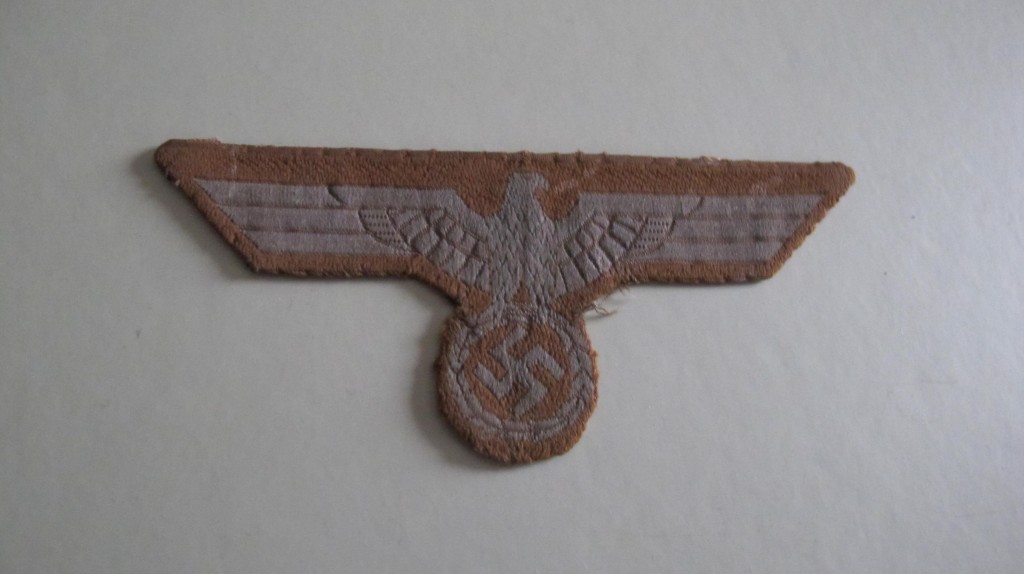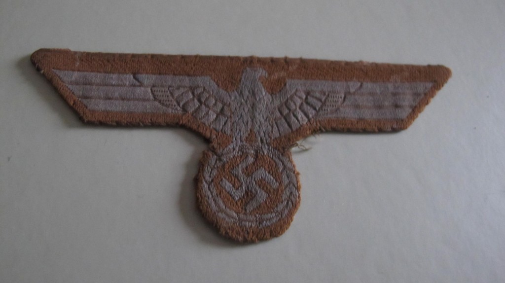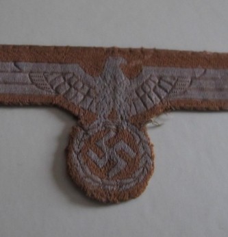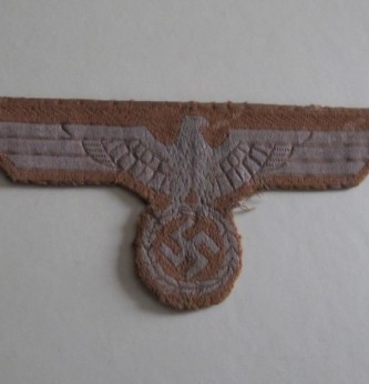 Uniform removed example Third Reich Army Afrika Korps early tunic breast eagle. Good bevo example in excellent condition