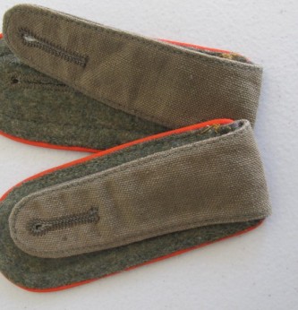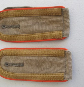 Excellent condition matched pair of Afrika Korps NCOs shoulder slip on straps. Red piped for Artillery. Excellent matched pair.