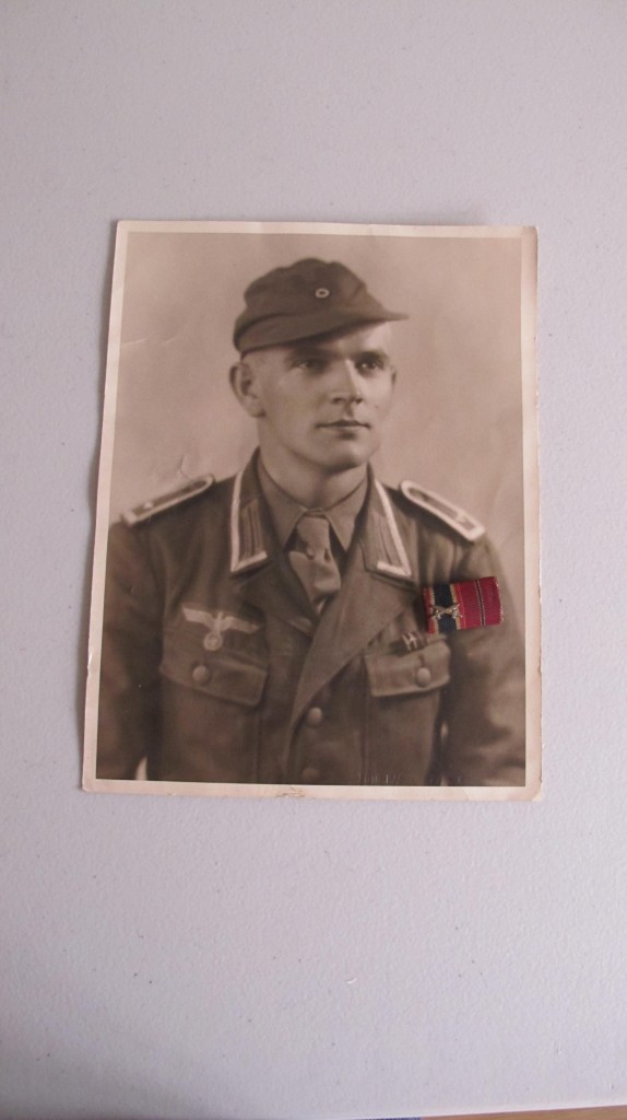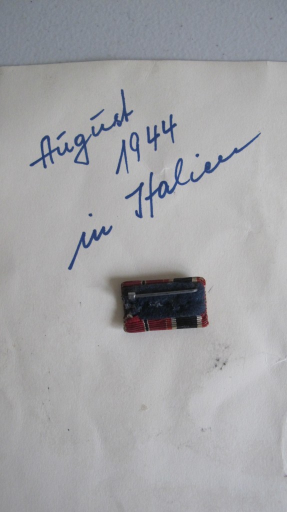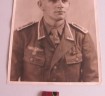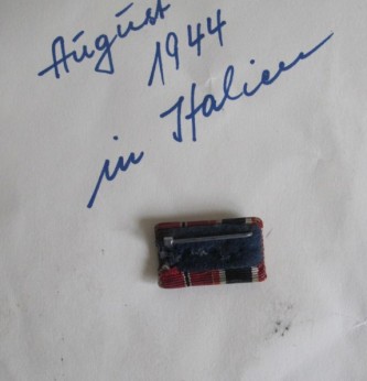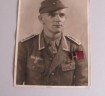 Third Reich studio portrait photograph measuring 24 x 18cm. Showing Afrika Korps army soldier wearing ski cap and uniform plus his medal bar of War Service Cross and Russian Front medal. These being shown worn in the photo. Reverse of photo taken in Italy and dated 1944. Probably taken for family member. Veteran purchase. Good condition.