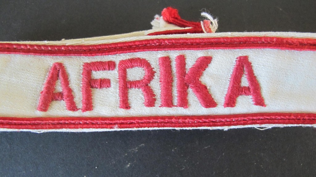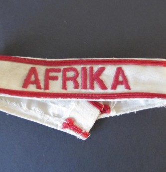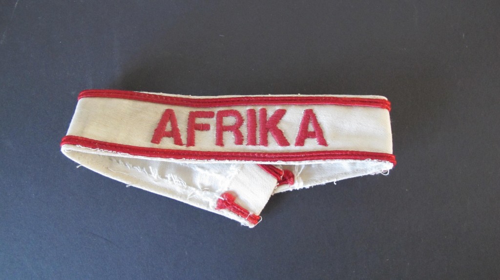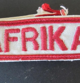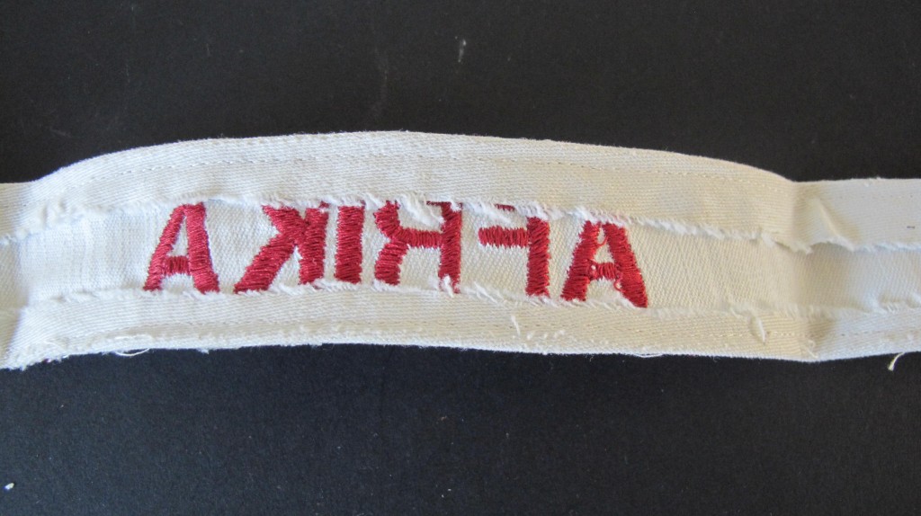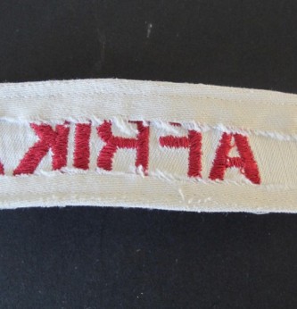 Scarce and unusual Third Reich Naval issue Afrika service cuff band. White cloth with red piping to top and bottom. Full length example for the Naval Summer Tunic. Issued for North Africa campaign. Scarce and seldom fund cuff band.