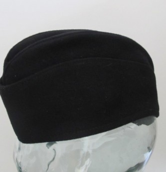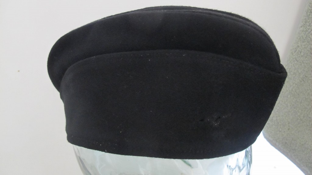 Third Reich Allgemeine SS black wool side cap. Couple of minor moth nips to wool pile but overall very good. Un-issued example with no insignia. Black cotton lining with RZM/SS label to inside. Probably liberated directly from stores.
