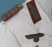 Excellent Third Reich four pocket Army Generals white summer tunic. Complete with all its period sewn Army General heavy gold wire collar patches and shoulder straps. Heavy gold bullion breast eagle and long six strand medal bar. Gilt detachable tunic buttons. Overall good condition with only minor service wear. A hard to find tunic.
