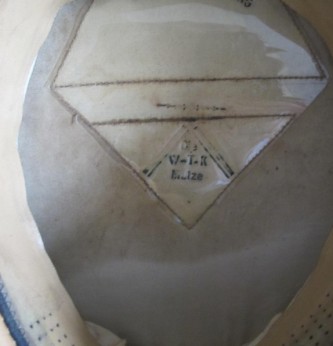 Third Reich German Army Artillery Officers Peaked Cap. Tall saddle shaped front with period applied bullion insignia. Officers cap cord. One small moth nip to lower edge of piping otherwise a nice example. Nice sweat diamond to crown with makers name. Excellent leather lining. Overall a nice example of this Officers peaked cap.