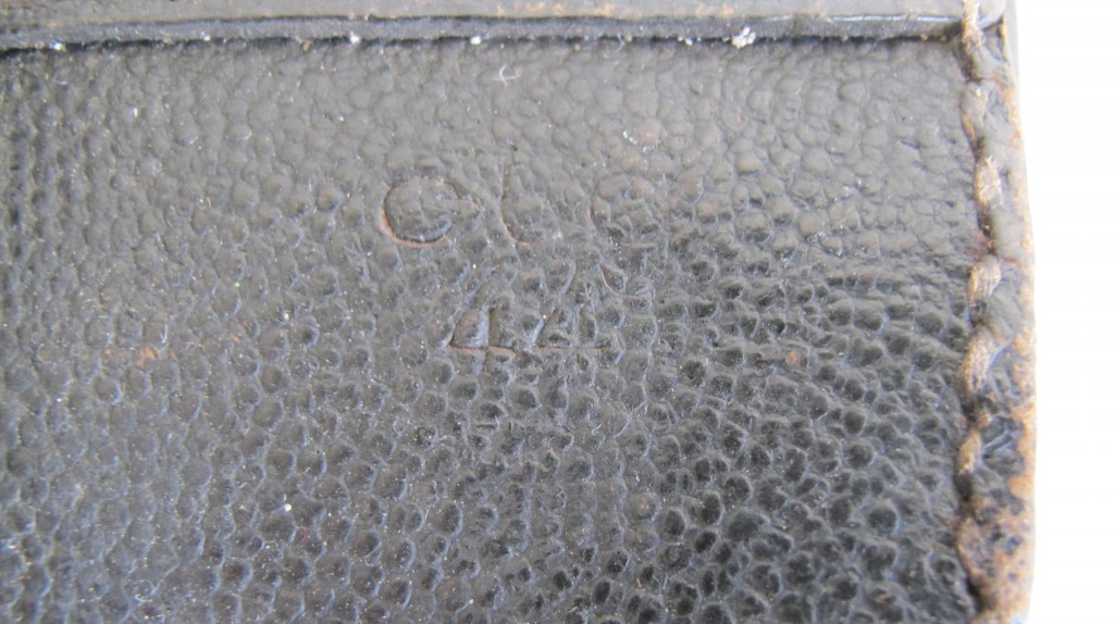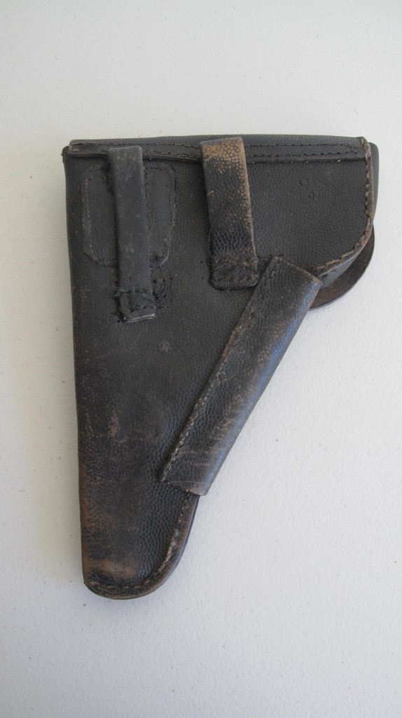 WWII German Army soft shell 1944 dated leather holster. Complete with belt loops to reverse. One loop a field repaired.  Complete with stripping tool and mag pouch to holster.
