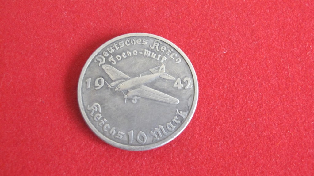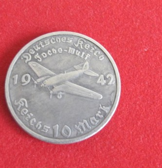 Interesting 10 Reichs marks commemorative medallion/coin. Commemorates production of the Focke Wulf Aircraft. Good condition.