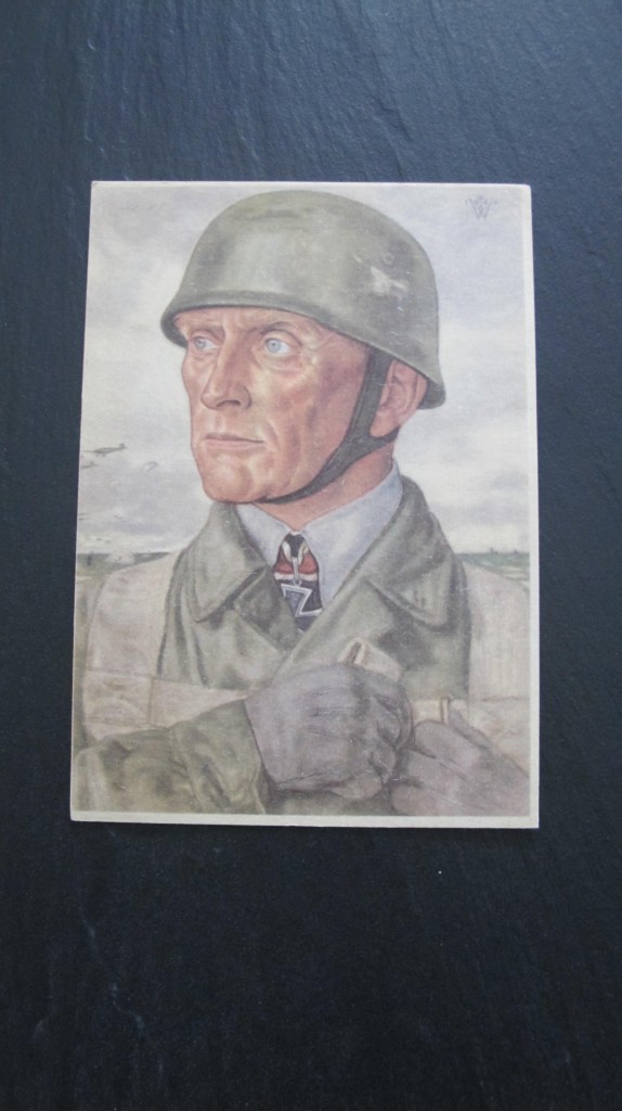 Third Reich coloured postcard featuring the head of the German Parachute Division wearing smock and helmet. Produced to raise funds in 1940. Excellent condition