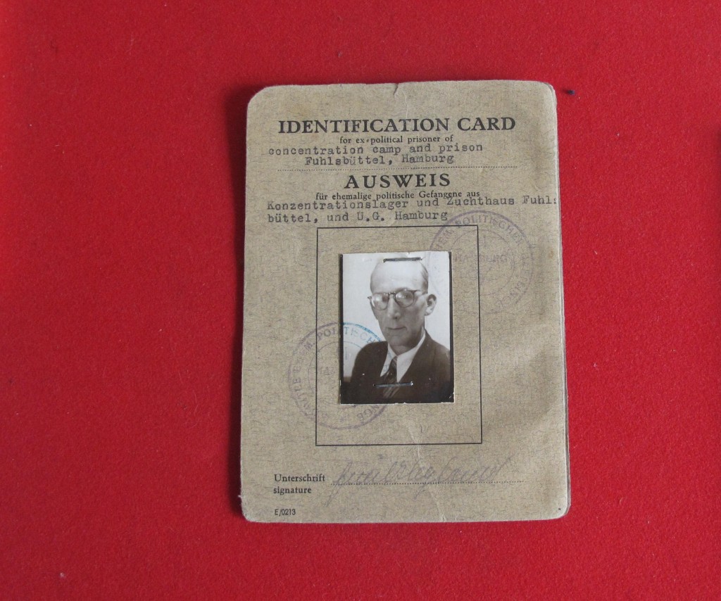 Three Identity documents to A German concentration Camp survivor and Political Prisoner of the Nazis issued in the British Occupation Zone in the Hamburg Area in the immediate Post War.
