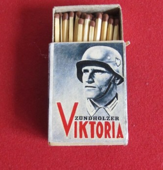 Unusual Third Reich German Army issue matches. These could be purchased from military mess. Front shows German helmeted soldier with victory below. Complete with matches and in good condition.