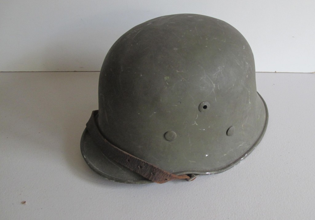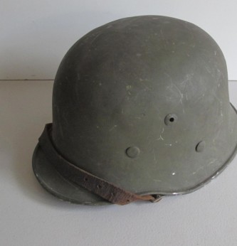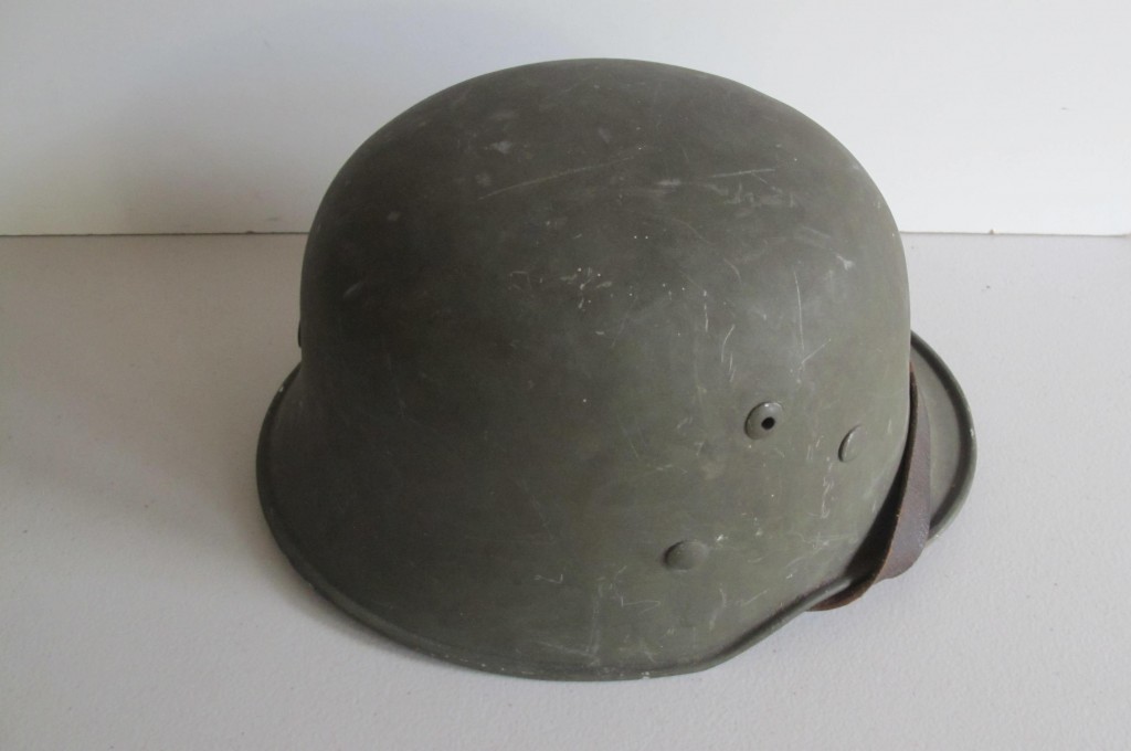 Third Reich German Army Officers non decal lightweight alloy parade helmet. Complete with 98% of its field grey paint finish. Leather chin strap and liner in good condition. A scarce and seldom found helmet nowadays.
