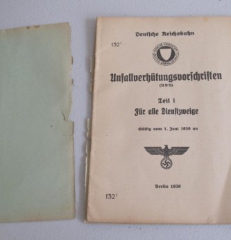 Third Reich German State Railways Accident Prevention Regulation Booklet Pt 1. Issued for all railway employees and valid from 1930. This one issued Berlin 1939. Front cover now detached but otherwise good condition. The German state railways was an important part in the German machine for moving supplies and troops throughout Germany and the Eastern Front.