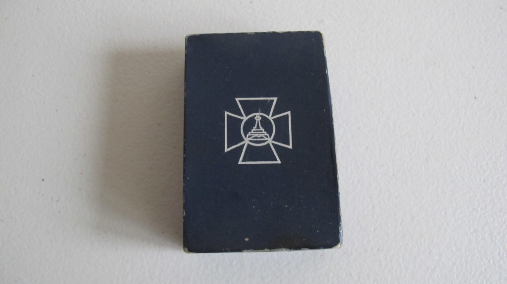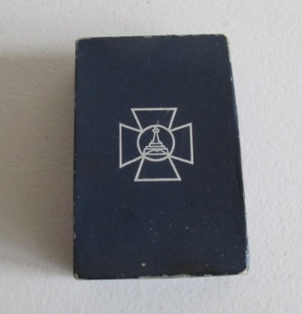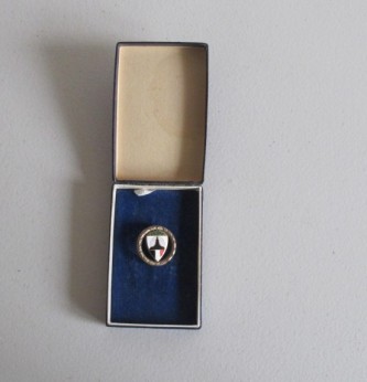 Third Reich German Veterans Organisation Leaders lapel badge. Oak leaf wreath with German colours to shield. Complete with its cardboard presentation box with veterans logo to lid. Good condition.