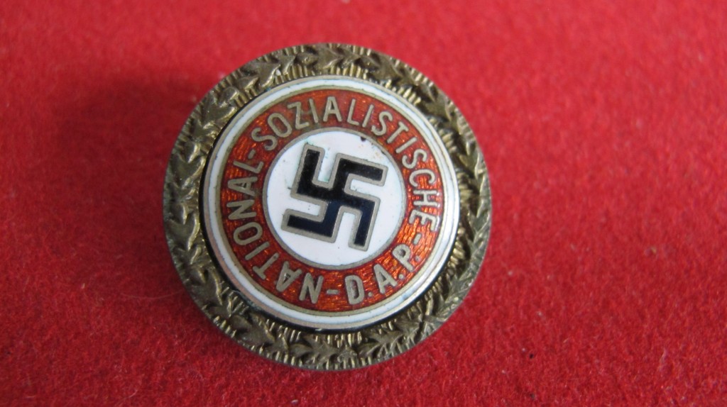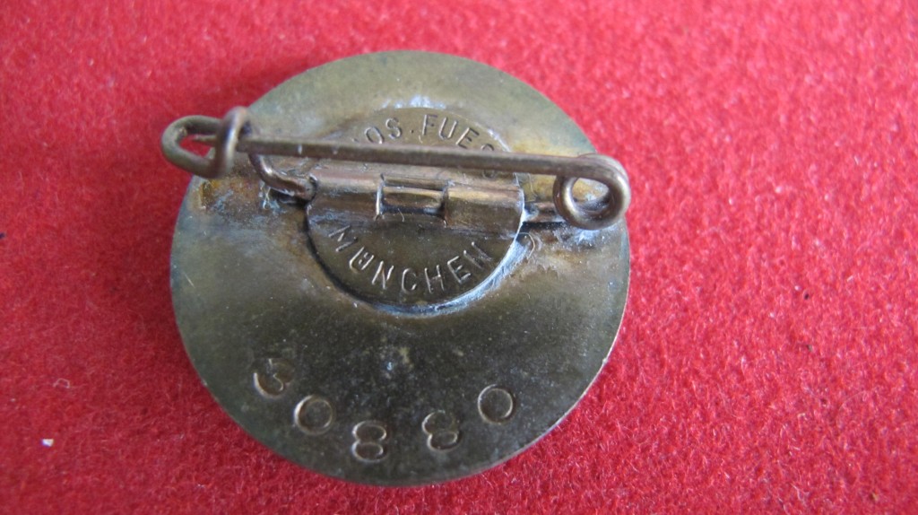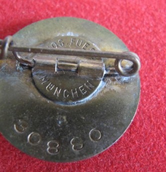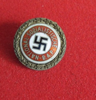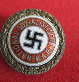 Scarce Third Reich NSDAP gold party members badge. Munich makers mark to reverse. Complete with correct pattern pin and membership No 30880. A scarce example of this rare badge worthy of further research.