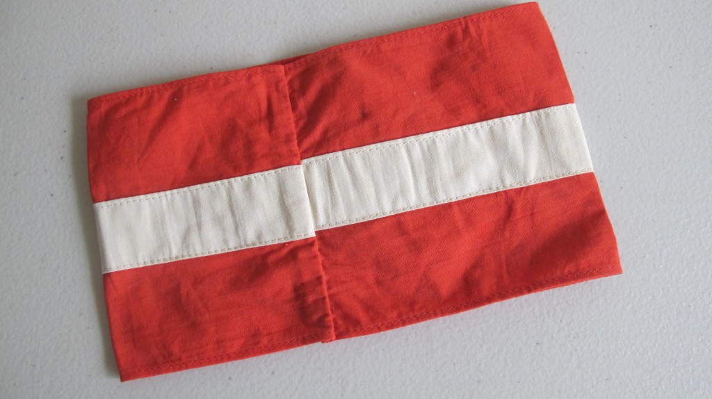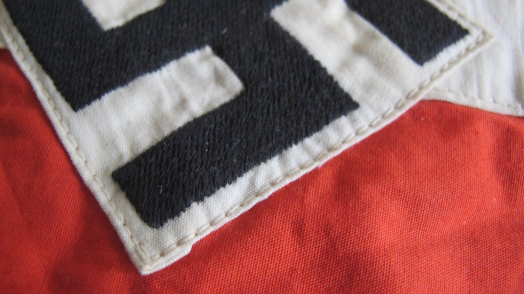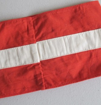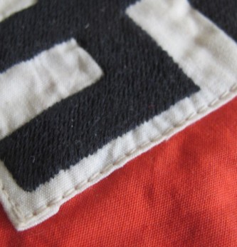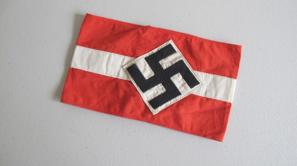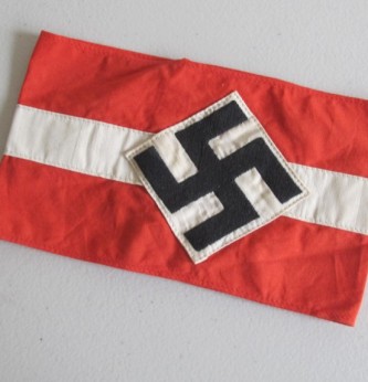Three piece construction Third Reich Hitler Youth arm band. Red/white/black with bevo swastika to centre. Good condition. RZM label to inside. Excellent condition.